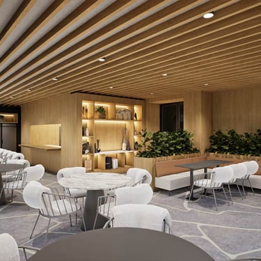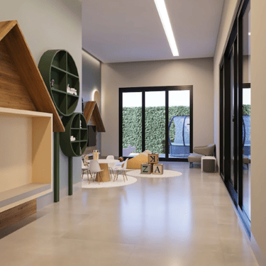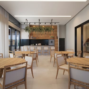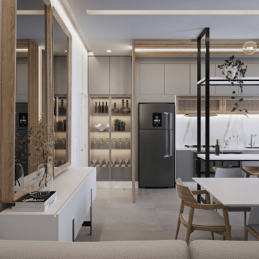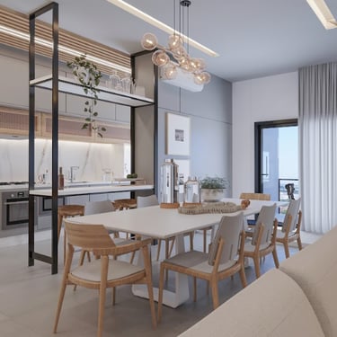 Espaços integrados com acabamento premium.